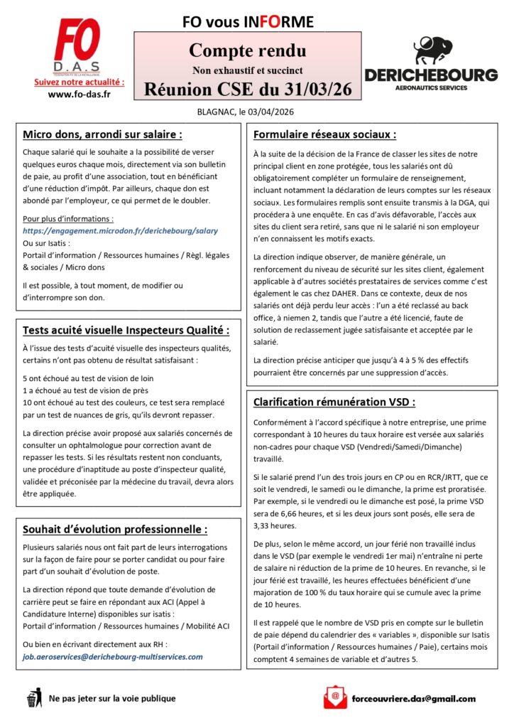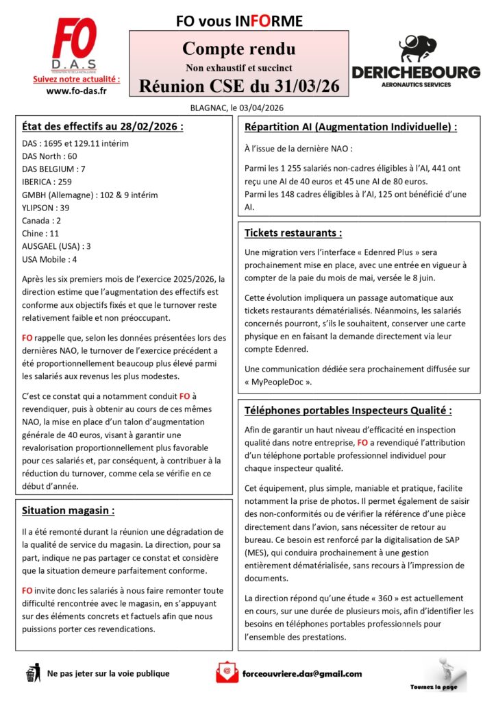 Compte rendu réunion CSE du 31/03/2026