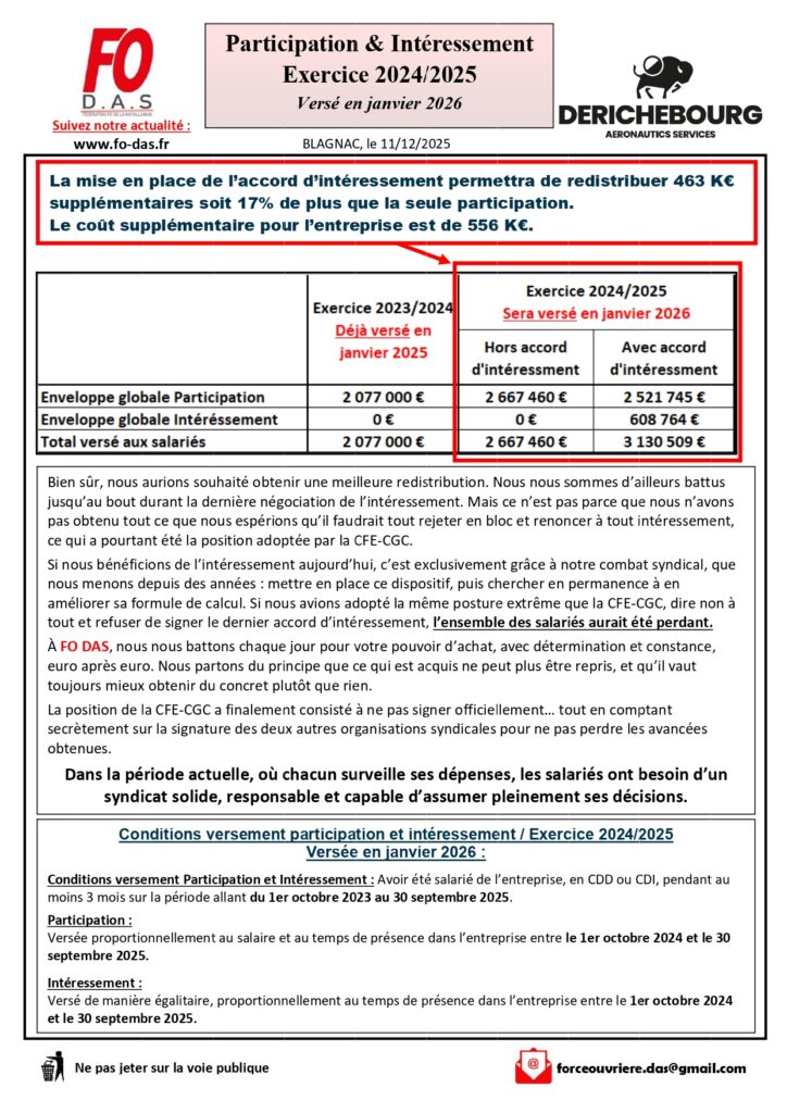 Participation / Intéressement exercice 2024/2025, versé en janvier 2026